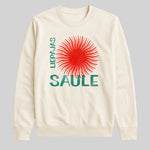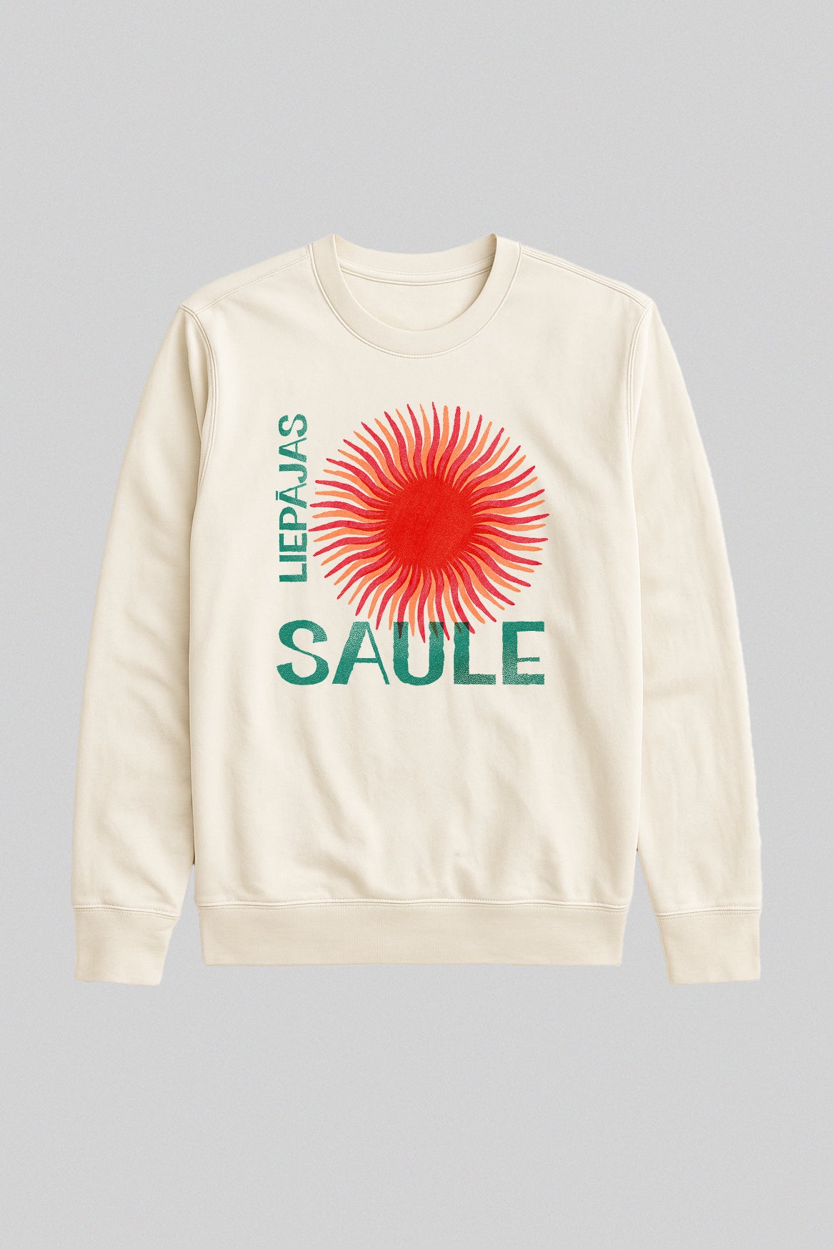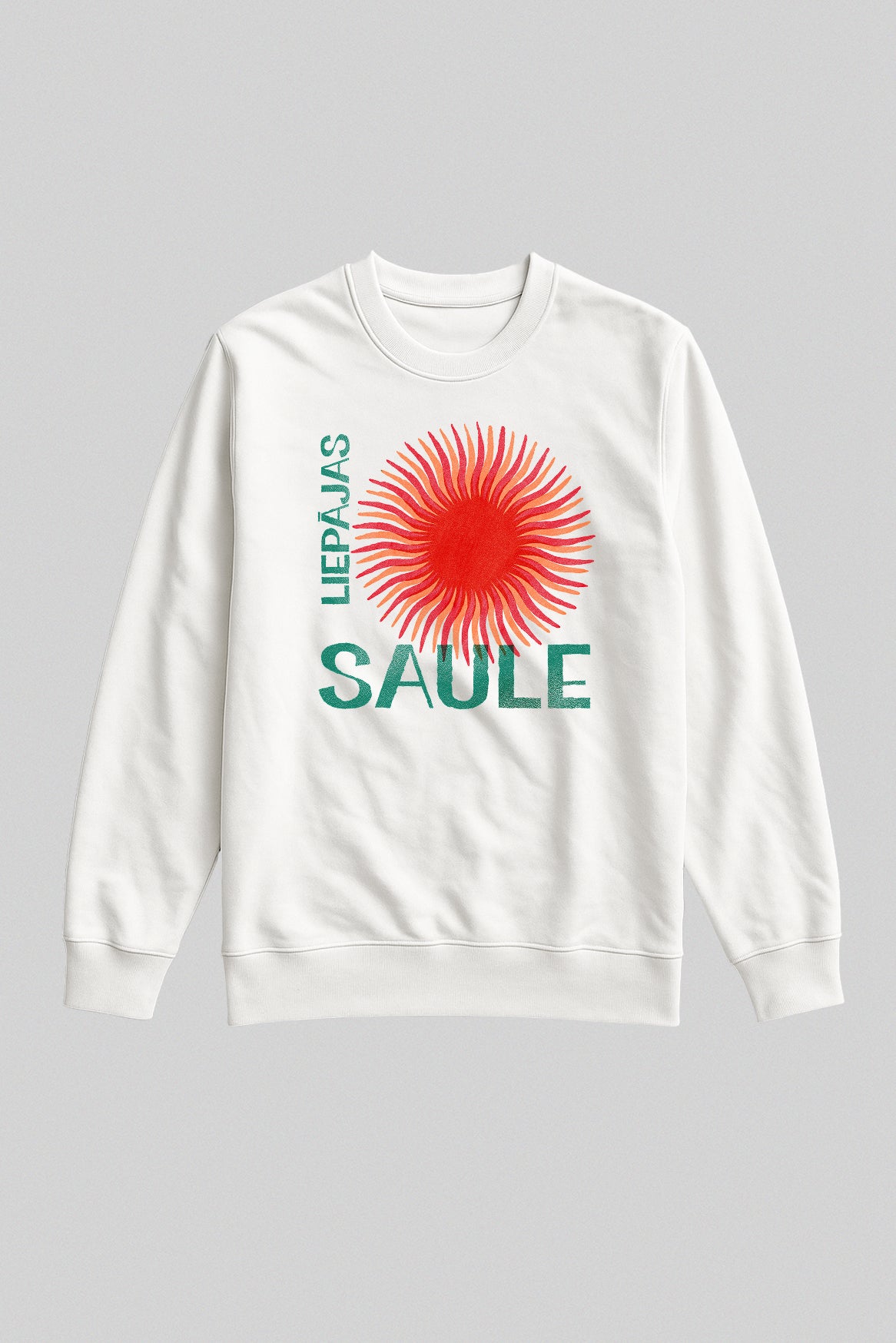 “Liepājas Saule — vēja sasildīts spožums uz auduma” Kad pilsēta, kur pūt, vējiņi ir dzīves moto, pēcpusdienā ielaiž sauli tieši jūrā, debess uz mirkli uzliesmo ugunsapelsīnā. Šo brīdi vietējie sauc par Liepājas sauli — gaismu, kas spēj sildīt pat čuguna tiltu margas. Mēs to esam notvēruši, iekapsulējuši liesmojoši oranžā grafikā un piešuvuši klāt divus melnus vārdus, kas čukst: “Silti būs, pat ja vējš svilpo sānos.”