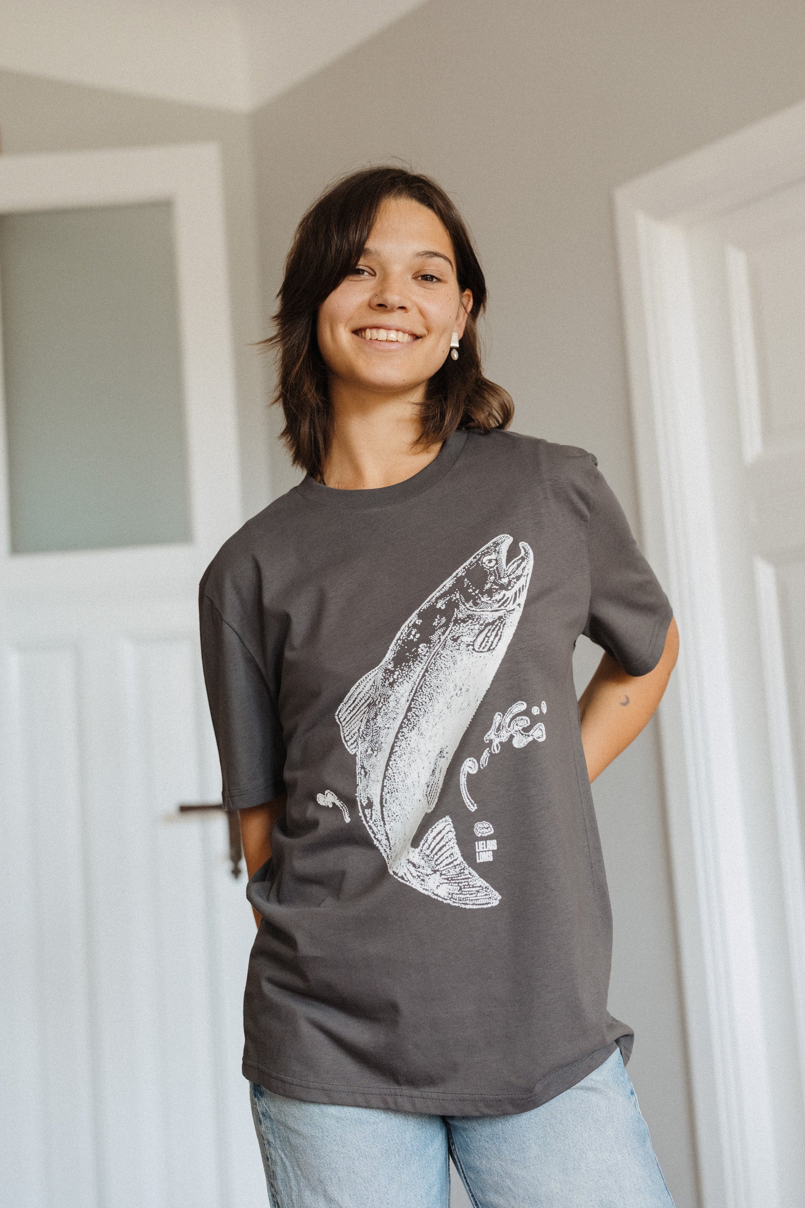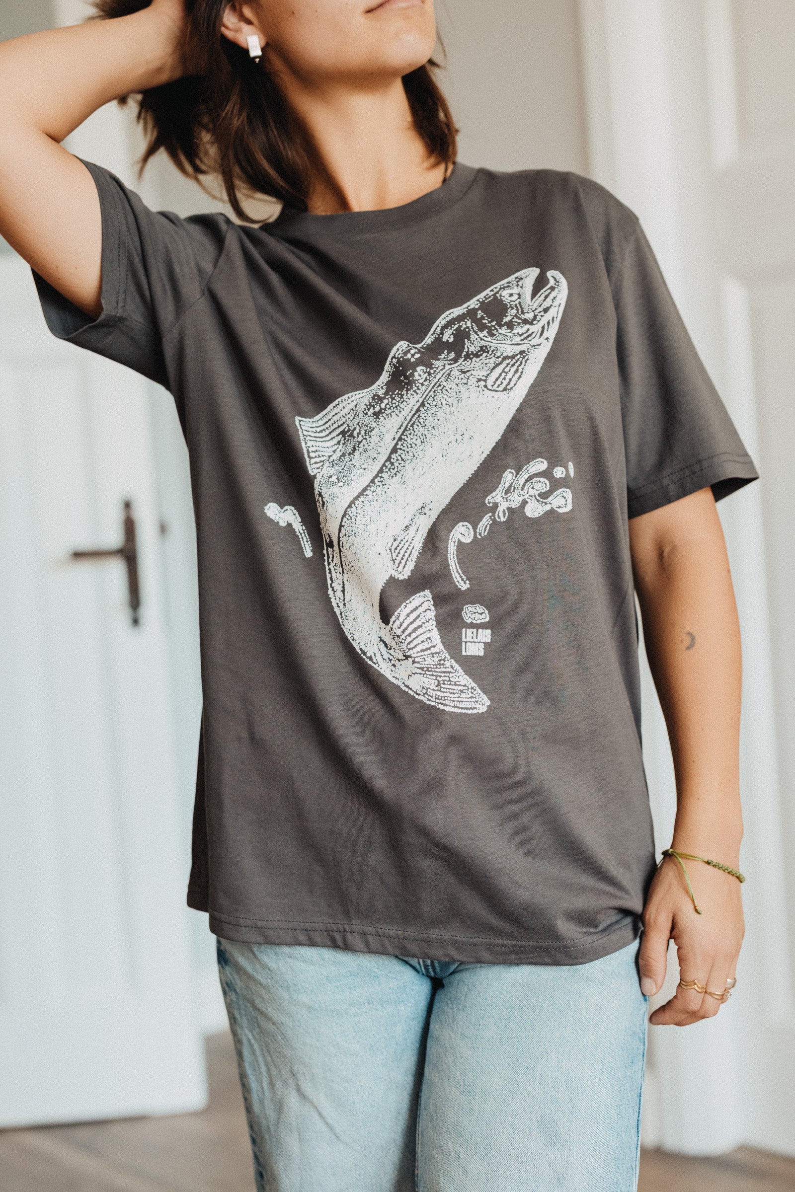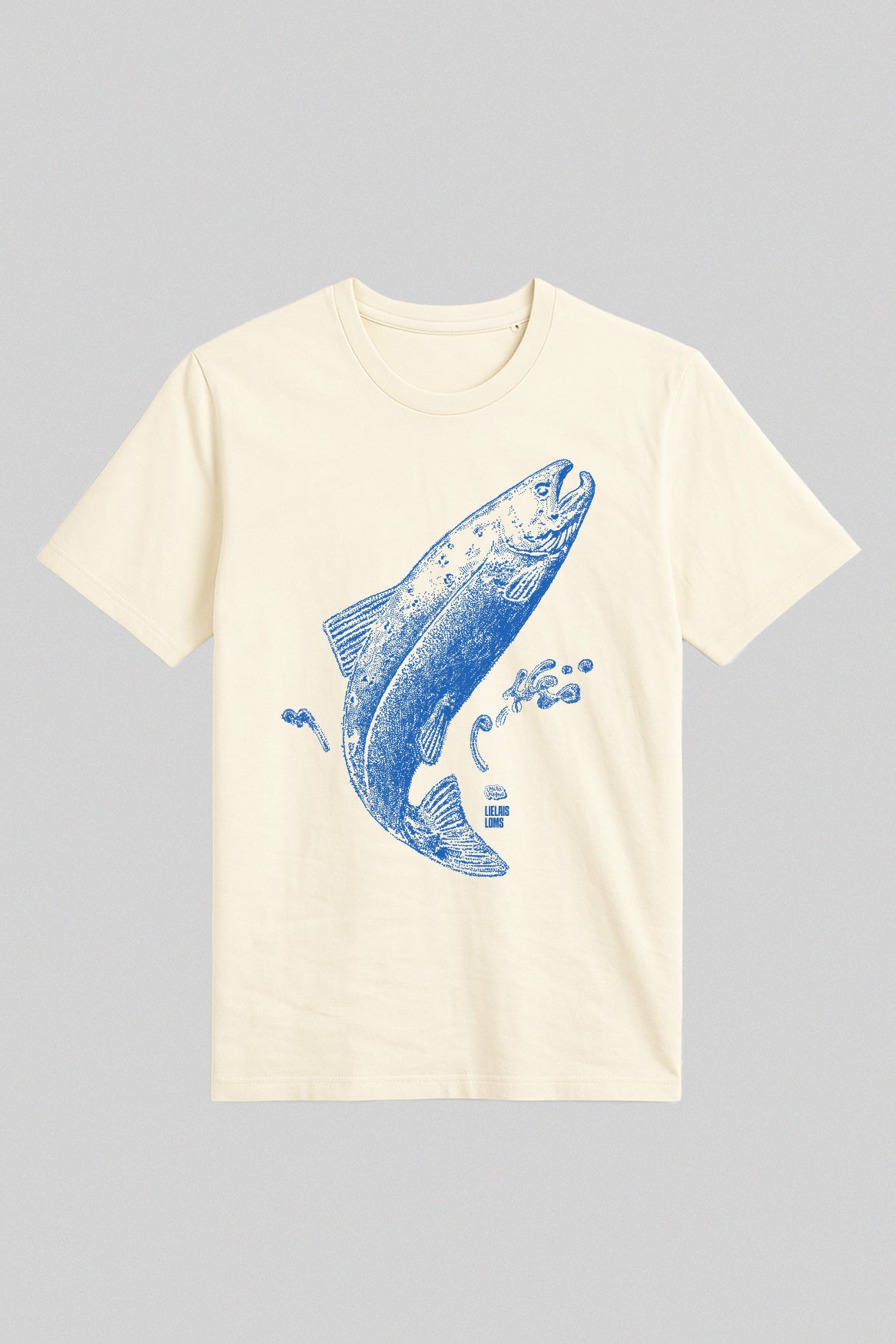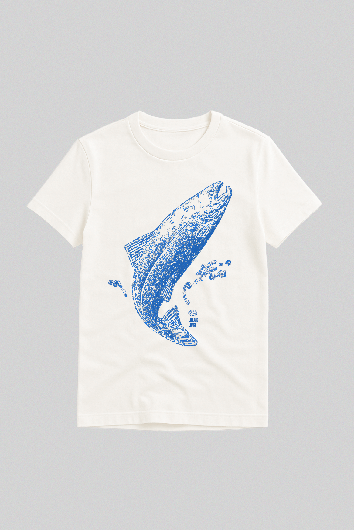Atceries to sudrabaino vienlatnieku, kurš kabatā činkstēja kā veiksmes talismans? Uz tā bija staltākais Baltijas lasis, vienmēr ceļā pret straumi. Mēs to monētas varoni izlolojām lielākā mērogā: zilā punktgrafikas zīmējumā lasis izlec no Daugavas mutuļa, šļaksta ūdens pilienus un zvēr, ka katra diena ir “lielā loma” vērta.