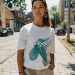 T-krekls ir ražots no augstas kvalitātes, ļoti mīkstas un ērtas, 100% organiskas PETA sertificētas kokvilnas. To uzvelkot, Jūs pārņems viegla un patīkama sajūta.